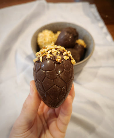 • 6 x handmade dark chocolate hazelnut eggs